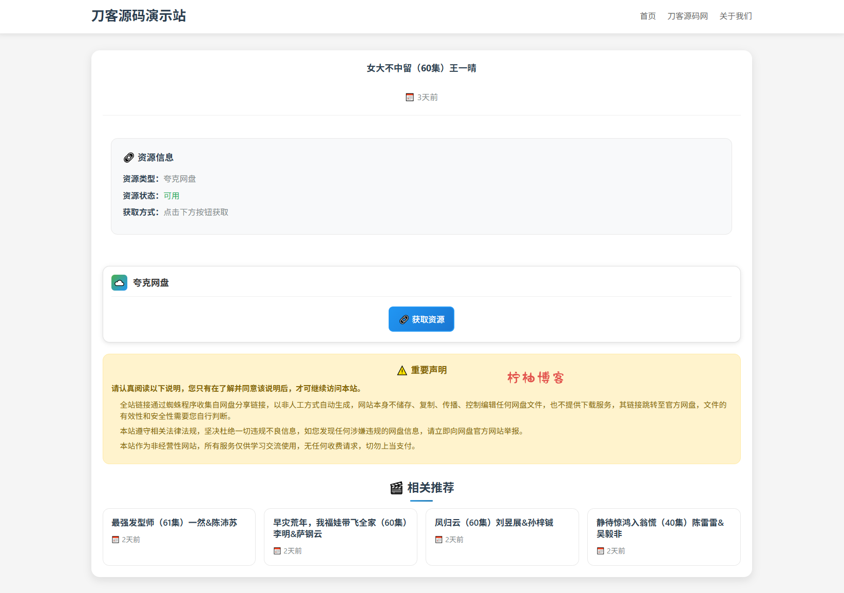 本站名称:柠柚博客