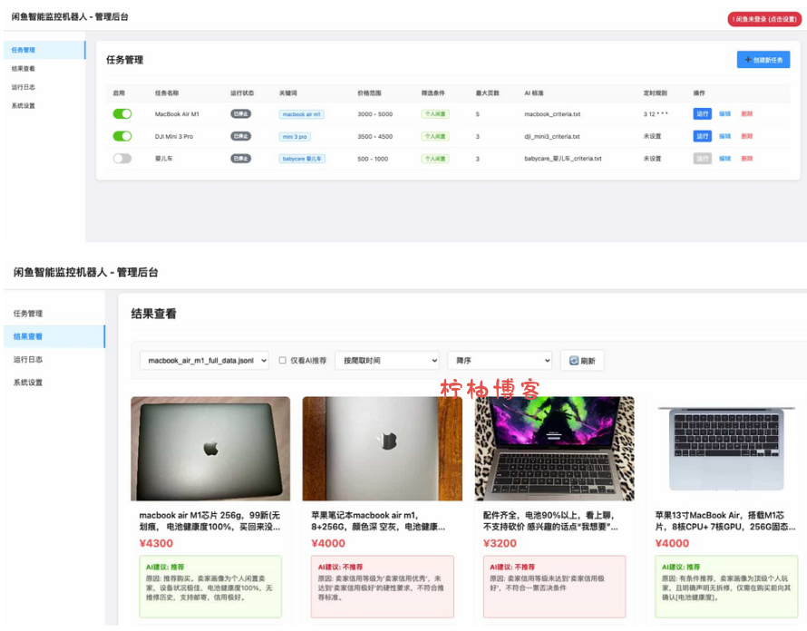 高度可定制: 每个监控任务均可配置独立的关键词、价格范围、筛选条件和AI分析指令 (Prompt)。
