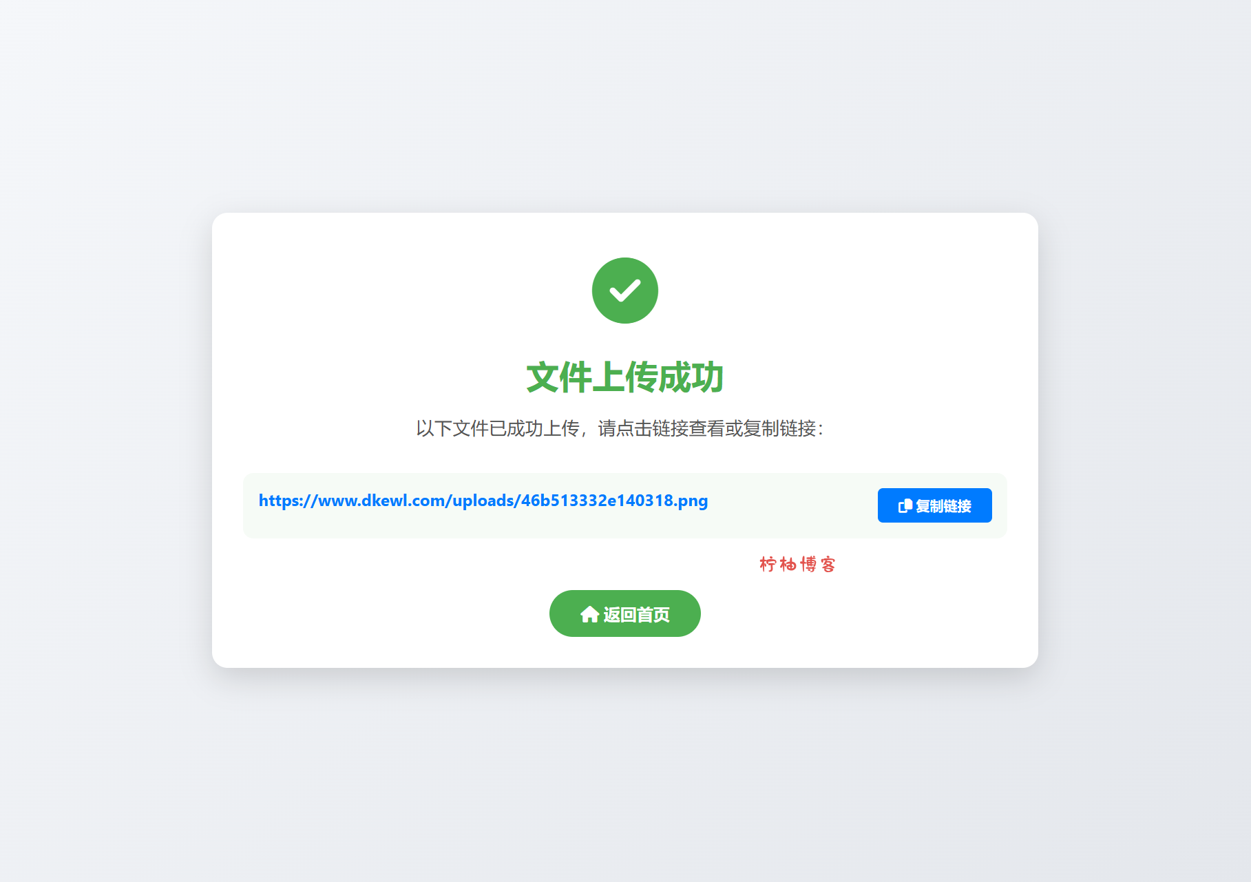 注意: 上传成功后需保存好自己的链接,因为这个不会记录上传记录,所以如果链接丢失,只能重新上传,或者到服务器查看上传的图片