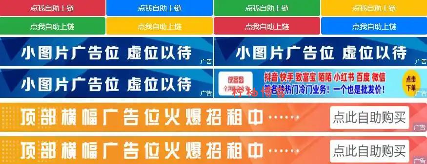 自助购买大横幅,小横幅,文字广告,后台可设置每个广告位的不同价格,颜色,宽高,自由增加修改广告位数量