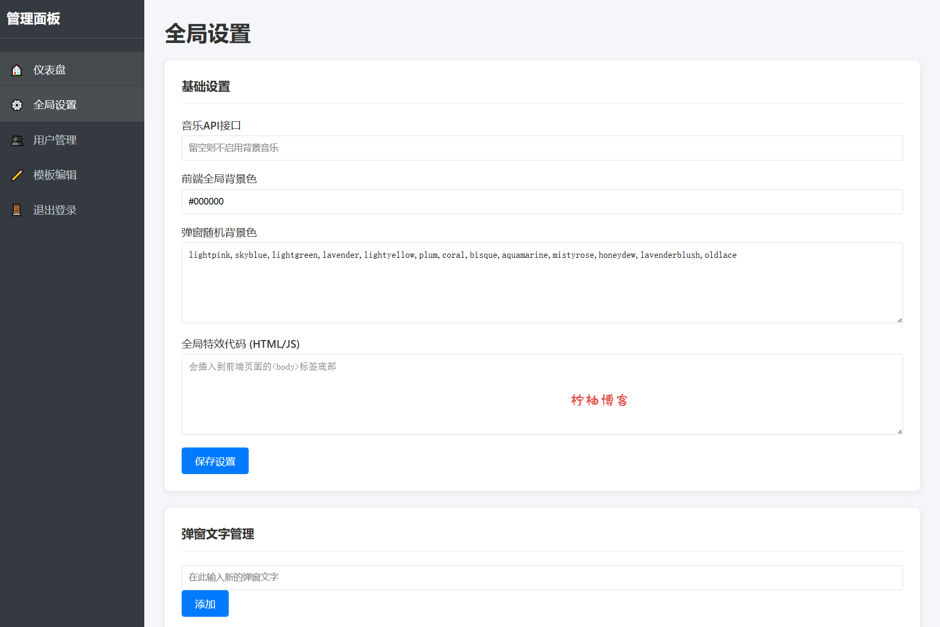 4、高度自定义:无论是管理员的全局设置,还是每个用户的个人设置,自由度都拉满了。文字、颜色、音乐、代码,想怎么玩就怎么玩。