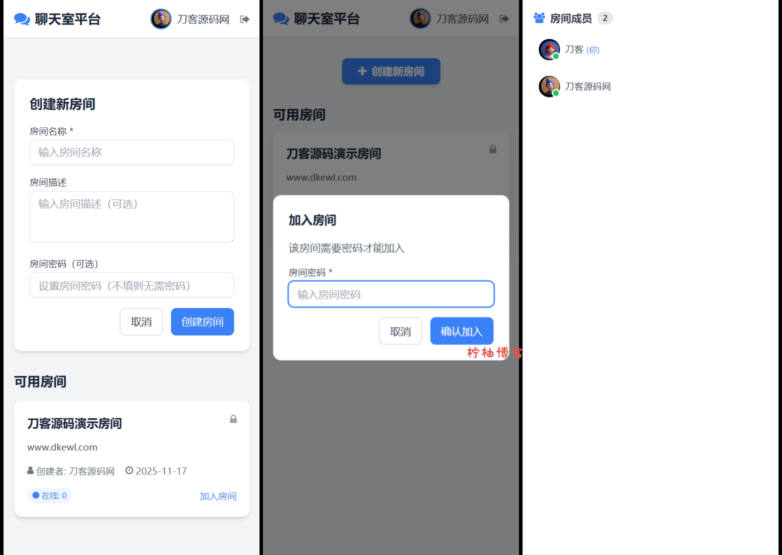 房间管理:支持创建带密码保护的群聊房间,加入房间需要验证